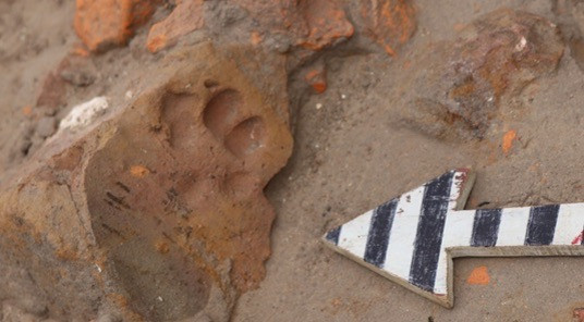 Im Süden gelang die Freilegung zweier schwach erhaltener Pfostenlöcher, deren Pfosten nach der Nutzung bzw. dem Verfall des Bauwerks gezogen und mit Schutt verfüllt wurden. In ihnen fanden sich Fragmente von Backsteinen im Klosterformat, Ziegelbruch sowie Keramikscherben. Das Füllmaterial spricht für einen Abbruch des Bauwerks oder seiner Ruine im Spätmittelalter. Die Errichtung bleibt unklar, da Funde aus der Nutzungsphase nicht erkennbar waren.