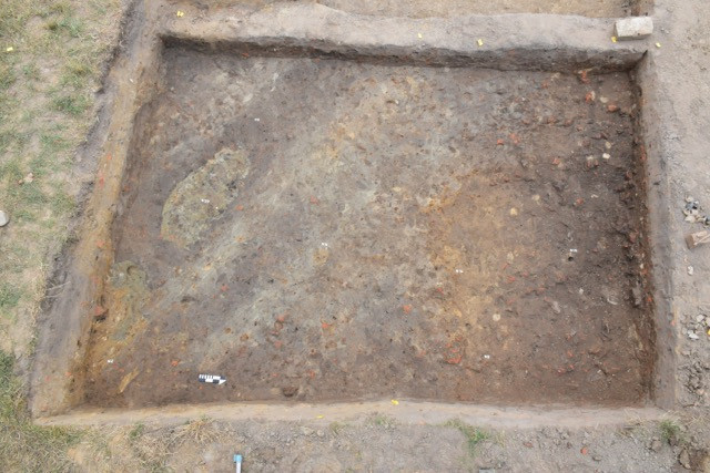 Es konnte noch ein weiteres Pfostenloch erfasst werden, doch ließ sich kein Grundriss eines Gebäudes erkennen und auch die großflächige Untersuchung erbrachte keine Reste eines Laufhorizonts.