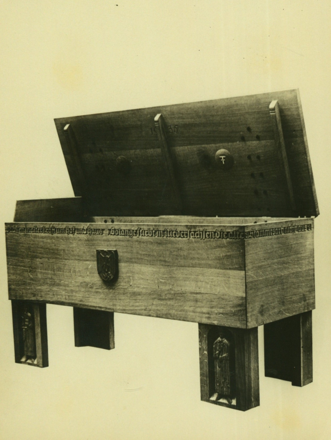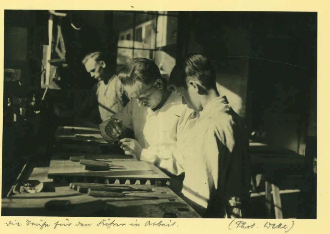 Das Stadtarchiv Osterode hat Fotos zur Verfügung gestellt, die den Herstellungsprozess und die fertiggestellte Truhe zeigen.