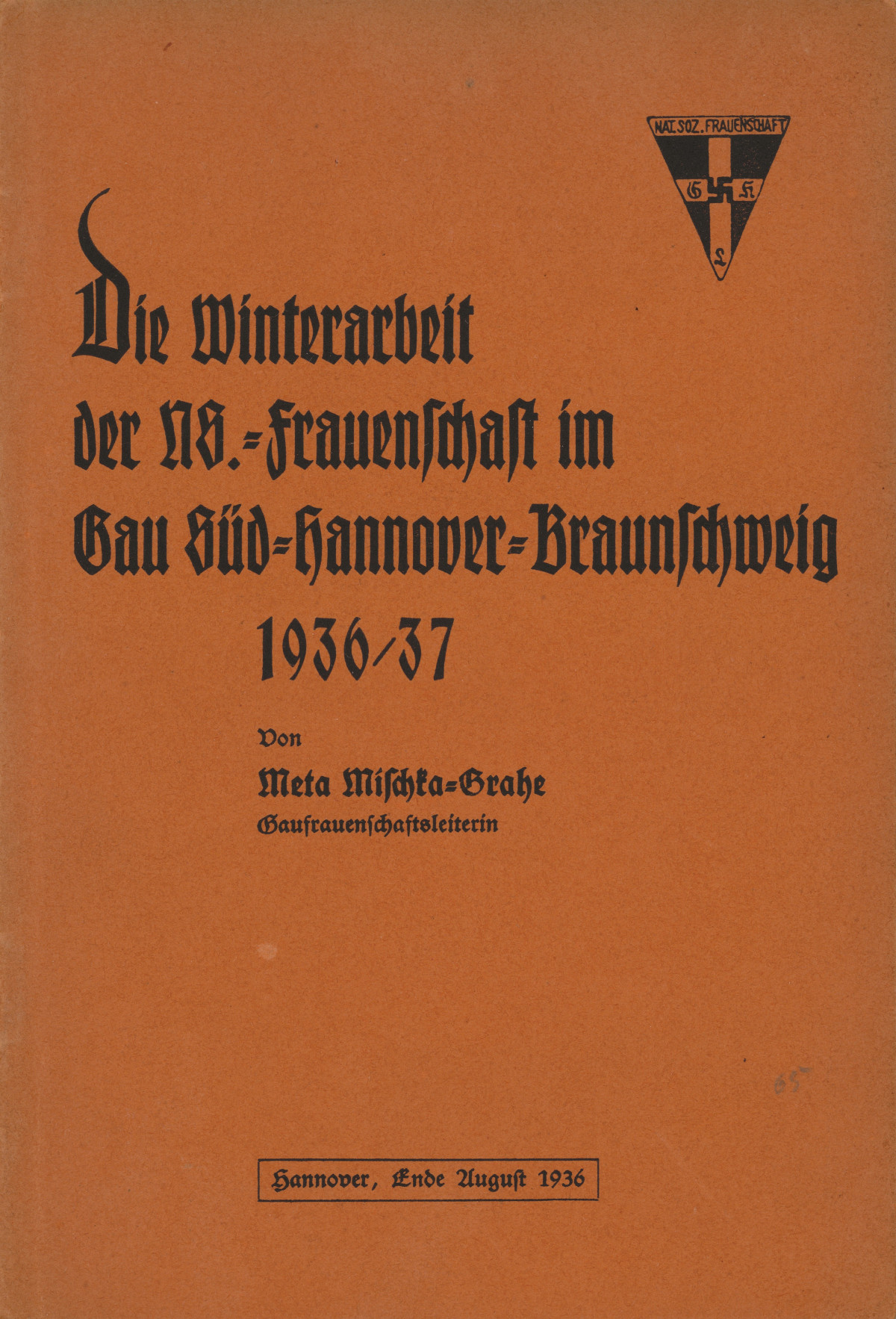 1936 veröffentlichte Meta Mischka-Grahe eine Publikation mit dem Titel "Die Winterarbeit der NS.-Frauenschaft im Gau Süd-Hannover-Braunschweig", die sie mit den Worten schloss: "Mütter der Nation zu sein, ist unsrer Frauen Höchstes. Niedersachsens Frauen! Stolz, stark, treu und voller Güte, so wollen wir dem Führer helfen, unser Vaterland bauen, ein herrliches, freies Land, das wir mit unserem großem Führer über alles lieben. Heil Hitler!"