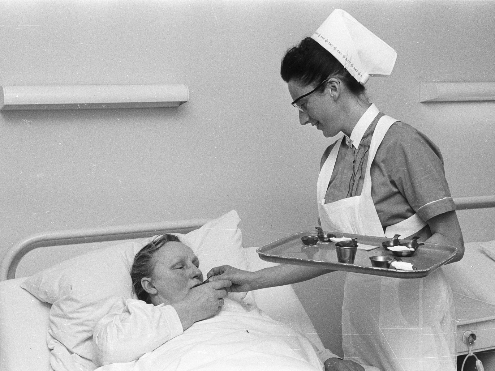 Lang vorbei sind die Zeiten in denen hauptsächlich Männer Ärztekittel trugen und Frauen Schwesterntracht, wie hier im Bassumer Kreiskrankenhaus 1966. Unabhängig von Geschlecht und Position ist der Kasack heute das allgegenwärtige Outfit im Gesundheitswesen. Darüber hinaus entscheiden sich seit Jahrzehnten mehr Frauen als Männer für ein Medizinstudium. Laut der Studie Medical Women on Top des Deutscher Ärztinnenbund)es waren 2018 62% der Studierenden der Allgemeinmedizin weiblich.
