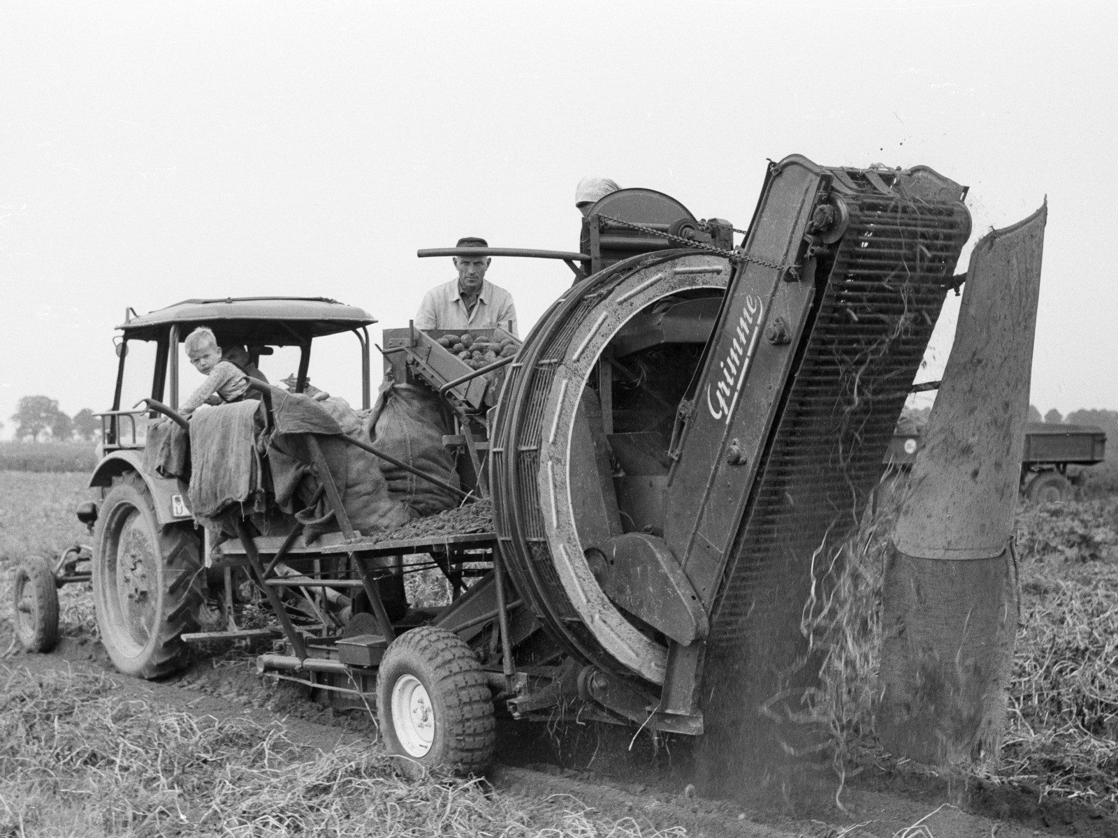 1950 gab es in Gesamtdeutschland noch 2,3 Millionen Pferde in der Landwirtschaft. Ihre Anzahl sank bis 1970 auf 400.000. Gleichzeitig stieg die Anzahl der Schlepper von 140.000 im Jahr 1950 auf 1,36 Millionen 1970. Je nach wirtschaftlicher Situation investierten die Höfe zu unterschiedlichen Zeiten in die Mechanisierung. Auf den Feldern fand sich, wie hier bei der Kartoffelernte 1963 bei Heiligenfelde, ein Nebeneinander von modernen Schleppern auf dem einen Feld und Pferdegespannen auf dem anderen.
